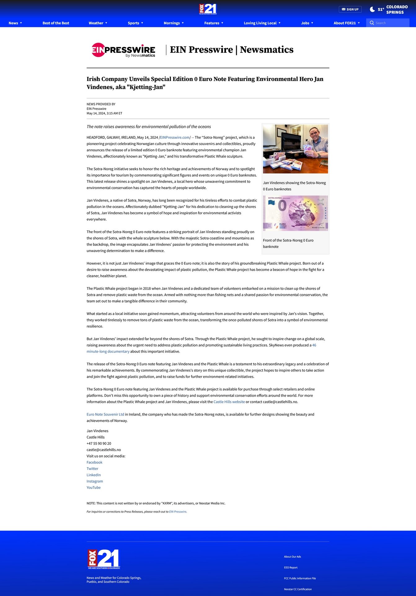 Jan Vindenes, a local hero whose unwavering commitment to environmental conservation...